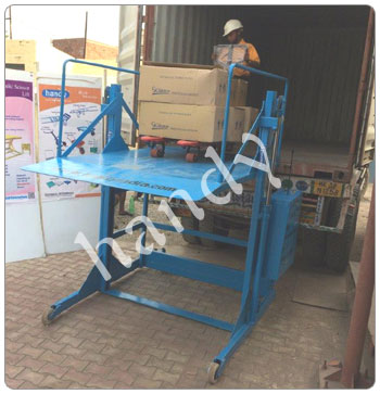 This “Handy” Mobile Truck Loader is very useful machine to load, Unload the material, Paper reels , boxes, Drums, small machines , items on pallets, from the all type of trucks / containers in plants , warehouses, Godowns etc.